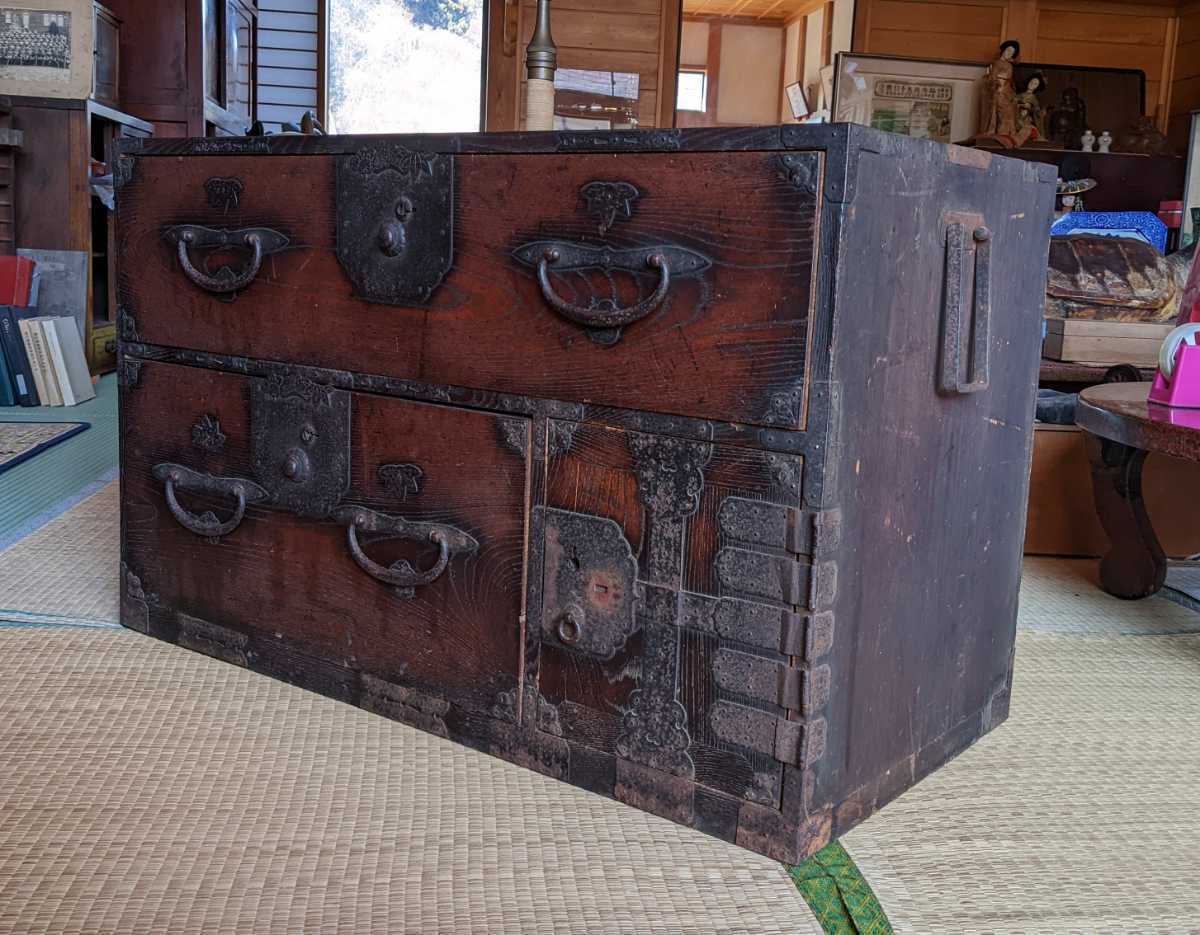 『自己紹介欄をお読みください』 経年の汚れやサビがあるものの、金具含め全体的にまだまだしっかりとしております。 画像をご確認ください。 【サイズ・約寸】 幅:92cm 奥行:45cm 高さ:57cm ※送料につきましては、着払いとなりますのでご注意ください。